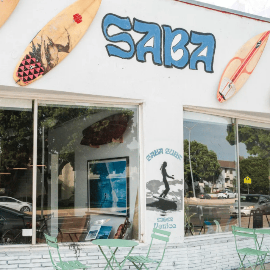 Saba Surf is a surf wax brand turned cafe, that sells amazing coffee and organic hand-poured wax in the heart of Venice. Founded by surfers, Gal and Laura, the duo are passionate about creating a beautiful space for locals to connect, relax, and get inspired by surf culture.